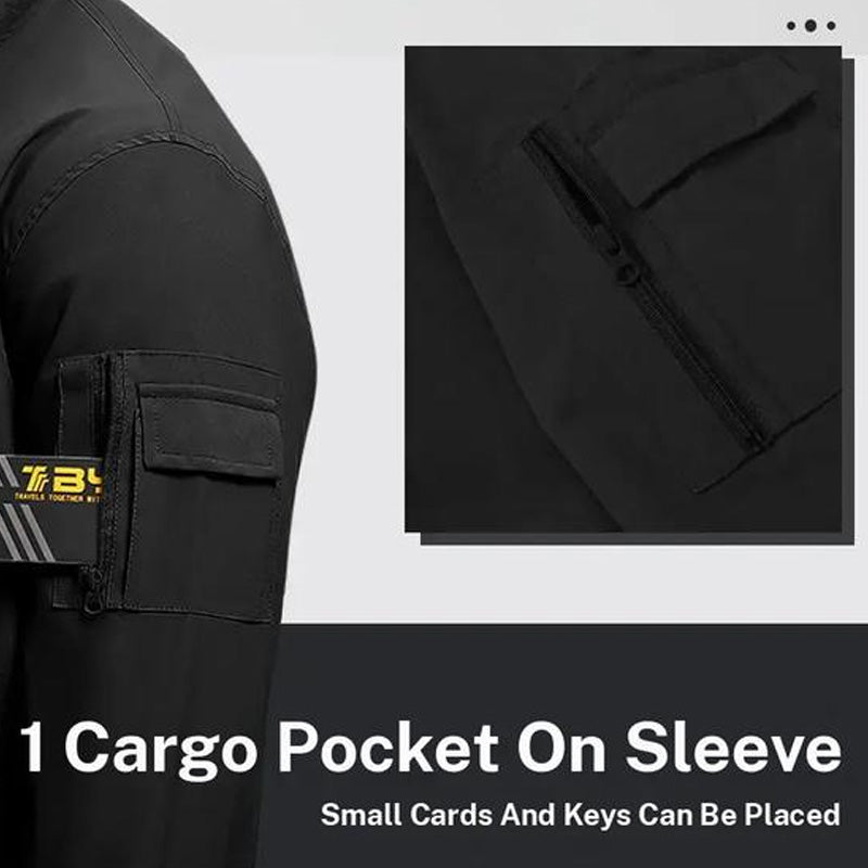 FUNCTIONAL POCKET: A dedicated zippered pocket on the left sleeve offers secure storage for small essentials like keys or earbuds. This detail blends practicality with bold design, breaking the monotony of solid colors and adding a utilitarian flair that elevates everyday wear.