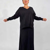 CHIC PLEATED SKIRT STYLE – The pleated skirt features a graceful drape that adds volume without bulk. It pairs beautifully with the V-neck top, highlighting the waistline and elongating the figure for a flattering, feminine look that transitions seamlessly from day to evening.